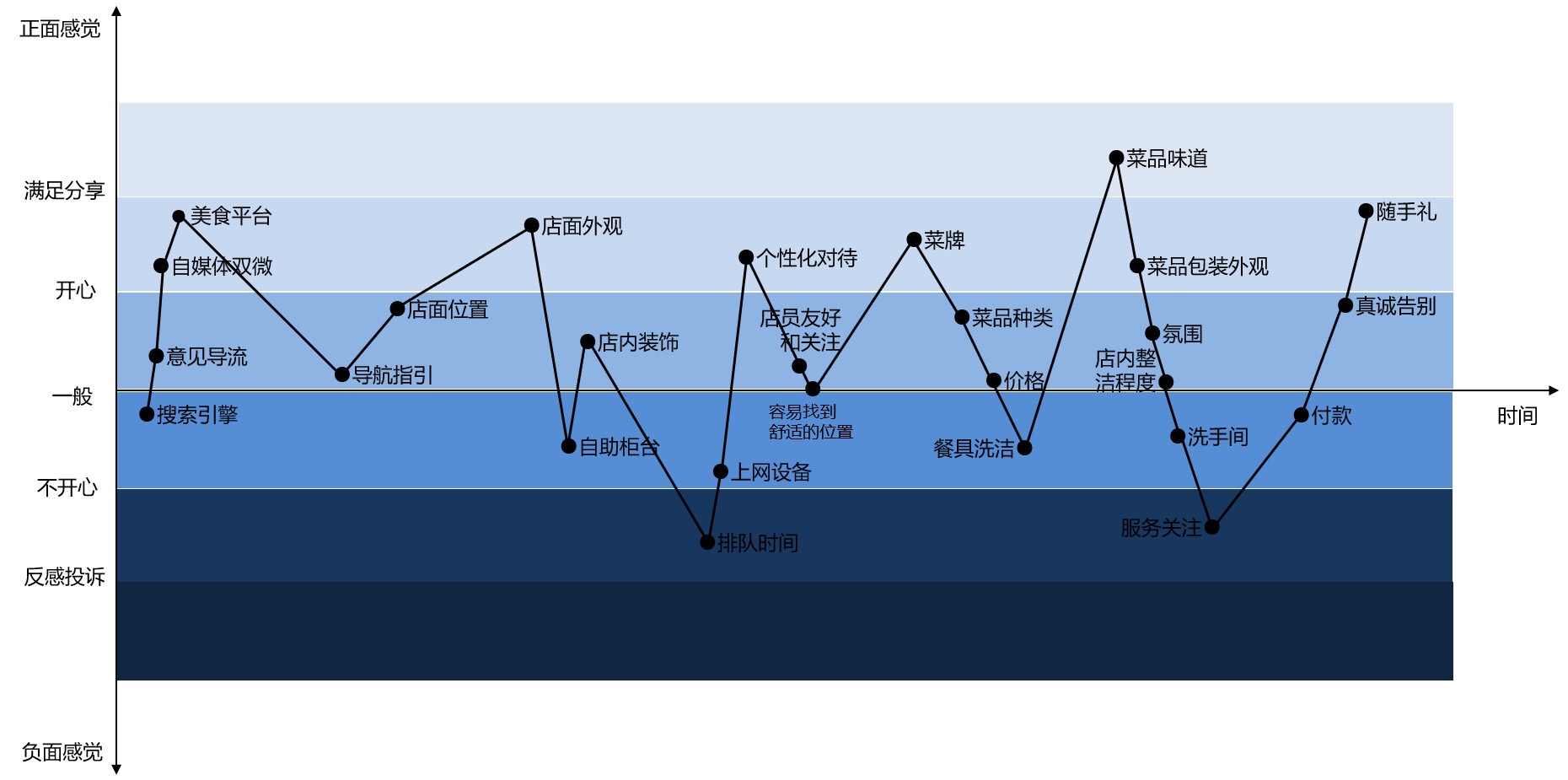 以餐飲行業(yè)為例,根據(jù)我最近去的一家餐廳,我畫了一個(gè)體驗(yàn)圖。